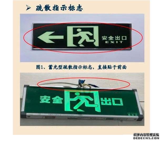 管理要求 建筑内应当采用灯光疏散指示标志,不得采用蓄光型指示标志替代灯光疏散指示标志。灯光型疏散指示标志灯的线路应采用金属管、可弯曲金属电气导管或槽盒穿管保护至用电处,矿物绝缘类不燃性电缆可直接明敷