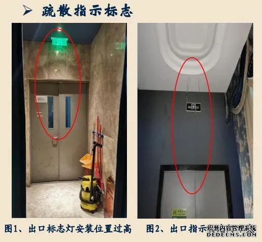 27、常见问题 安全出口标志灯安装位置过高,影响人员安全疏散时视觉效果。